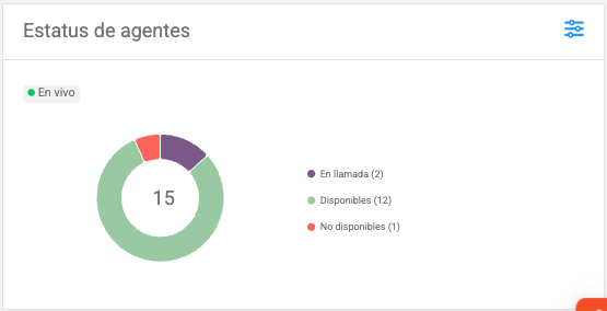 Indica cuántos agentes están disponibles, ocupados en llamada o no disponibles en ese momento.