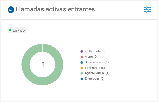 Indica cuántas llamadas entrantes están ocurriendo en este momento: las que están siendo atendidas, las que están timbrando, en espera, en menú, con el buzón de voz, o en la fila SIP para ser atendidas.