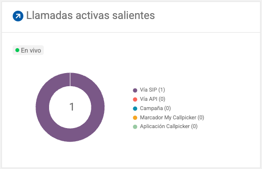 Indica cuántas llamadas salientes están ocurriendo en este momento y su origen (API, SIP, Aplicación Callpicker, Marcador My Callpicker o Campañas).